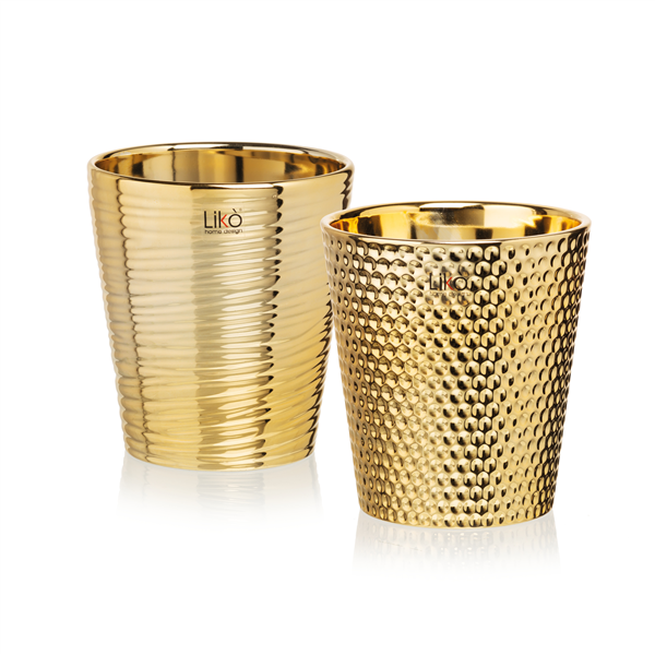 Κεραμική γλάστρα με εκθαμβωτικό χρυσό φινίρισμα και ανάγλυφη υφή που προσθέτει λάμψη και κομψότητα σε κάθε χώρο. Ιδανική για σύγχρονα και πολυτελή interiors, δίνει μια αίσθηση glamour τόσο μόνη της όσο και σε συνδυασμό με φυτά ή διακοσμητικά. Διατίθεται σε δύο σχέδια: κυματιστό και σφυρήλατο.