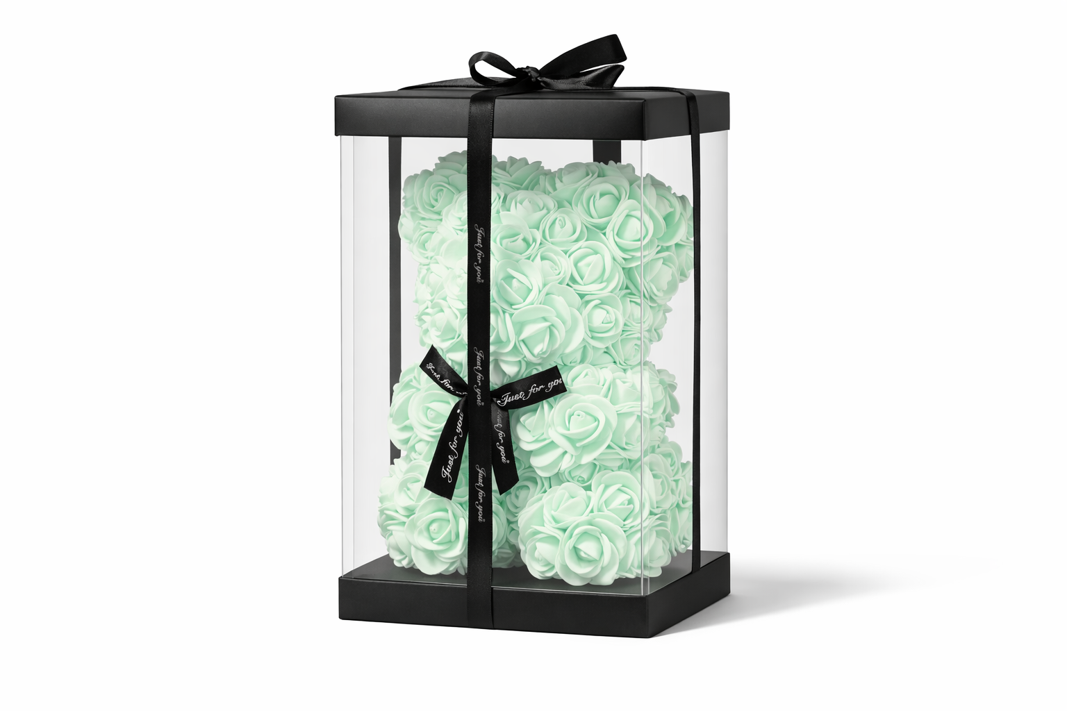 Αρκουδάκι από mint τριαντάφυλλα σε κομψό κουτί. Μοντέρνο και ξεχωριστό δώρο αγάπης για τον Άγιο Βαλεντίνο.