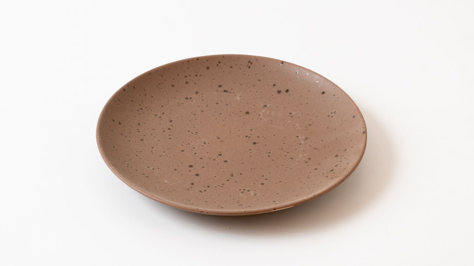 Κεραμικά πιάτα με φυσική ματ υφή και διακριτικά στίγματα, σε γήινες αποχρώσεις που ταιριάζουν σε κάθε τραπέζι.